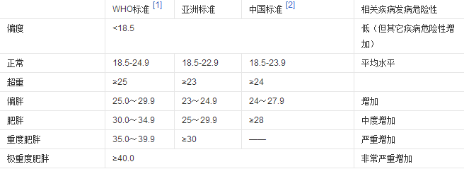 世界卫生组织WHO将BMI>25称为超重,BMI>30称为肥胖