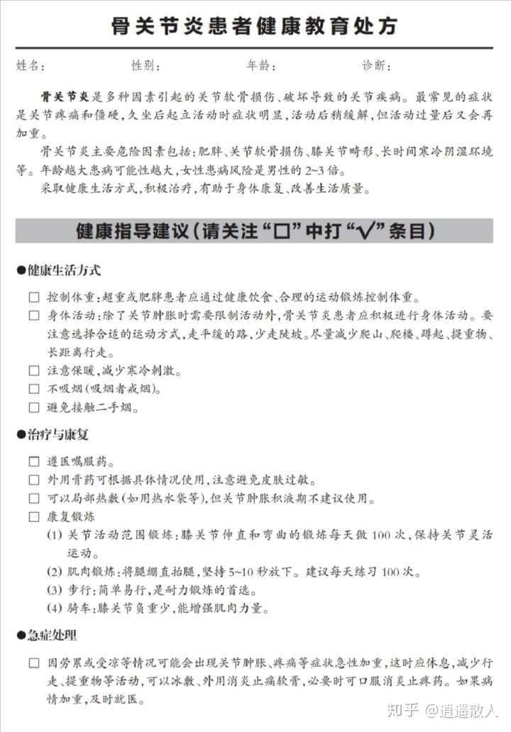 这里顺便分享一下中国健康教育中心培训部发布的《骨关节炎患者健康教育处方》[5],可供大家作为参考: